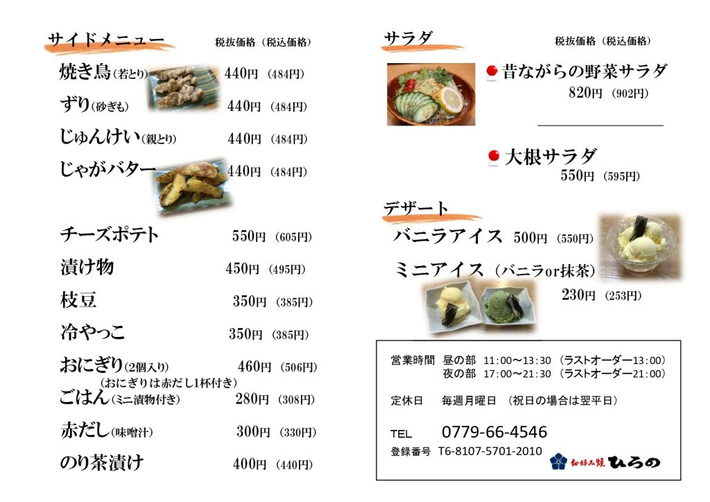 店内メニュー
