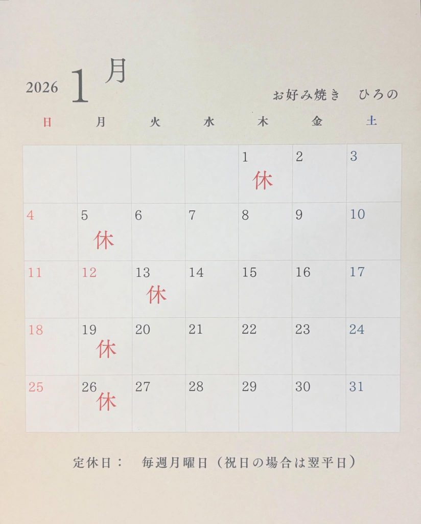 2026.1月 営業案内 お店情報 Facebook コピー 2026/1/7 明けましておめでとうございます🎍 昨年中は皆様にご愛顧賜り誠に有り難うございました。 2026年も、日常の中で気軽に利用して頂けるお店として、 変わらぬ味を大切にしてまいります。 本年もどうぞよろしくお願いいたします。